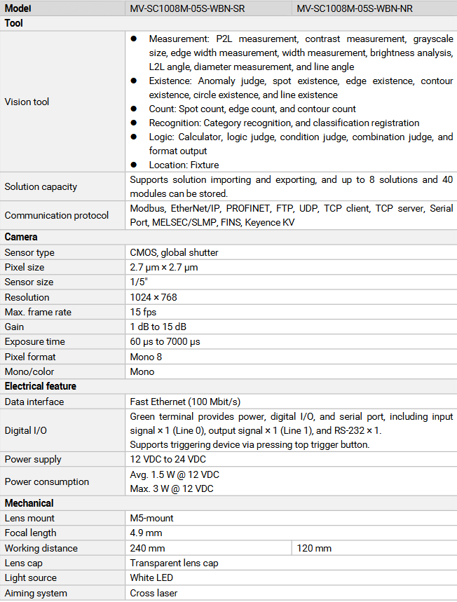Model: MV-SC1008M-05S-WBN-SR; MV-SC1008M-05S-WBN-NR