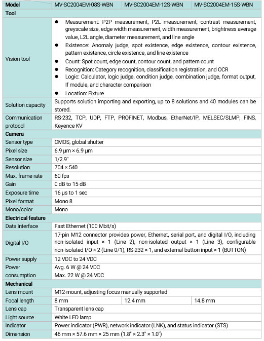 - 14.8 mm focal length:MV-SC2004EM-15S-WBN