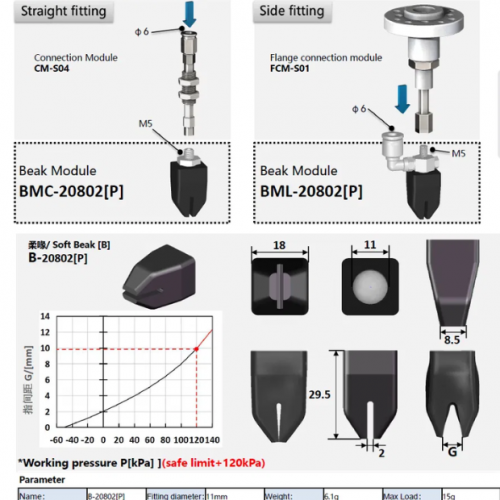 • Bạn có thể chọn loại thẳng hoặc bên đầu ngón tay mở dưới áp lực dương và kẹp dưới áp lực âm.