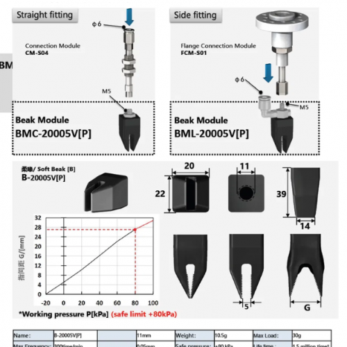 • Đầu ngón tay mở dưới áp lực dương và kẹp dưới áp lực âm. Nó được đề xuất sử dụng với bộ điều khiển Rochu.